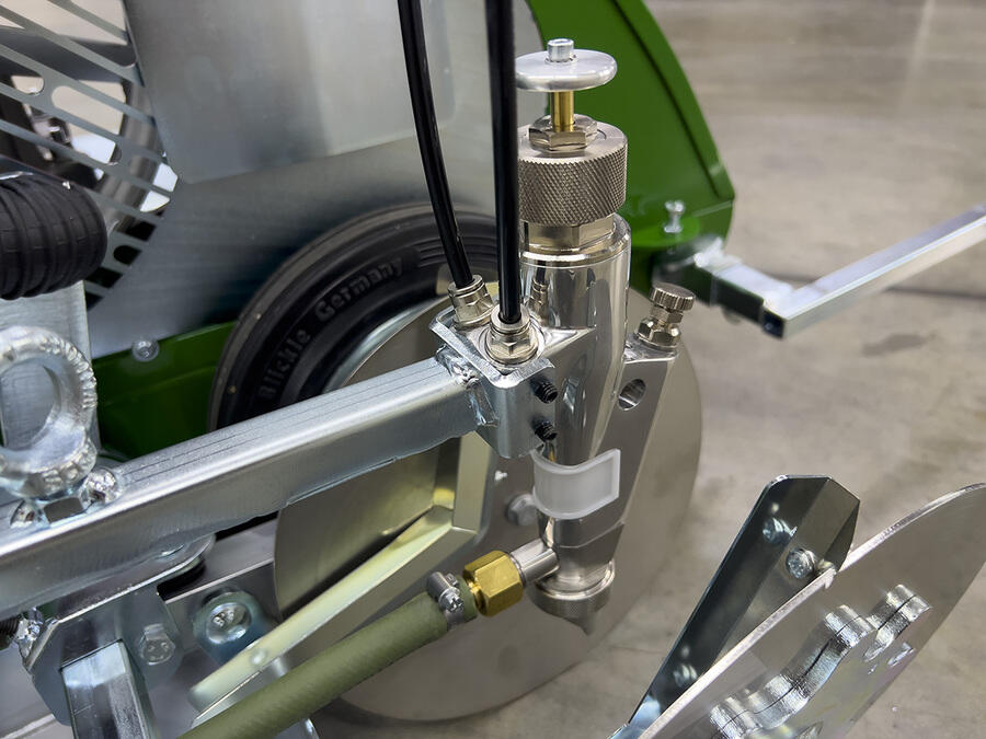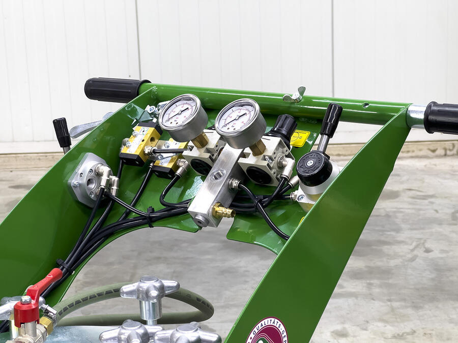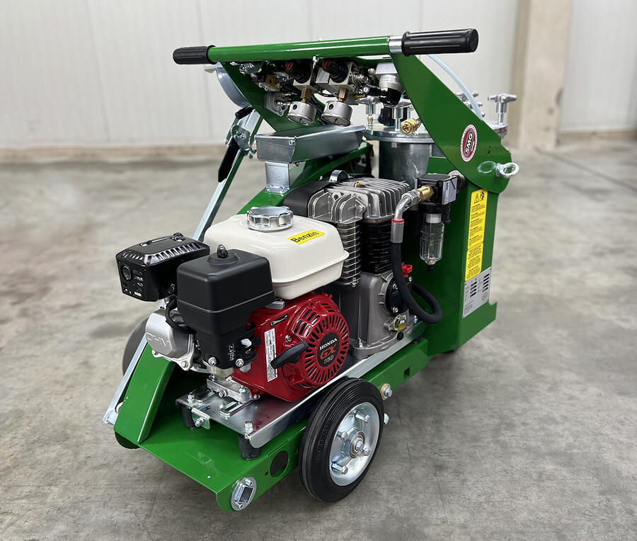 Its powerful drive motor coupled to the compressor generates the compressed air required to power all functions. The pressure container for the line marking paint delivers the required quantity directly to the precision spray gun. All adjustments necessary for precise application of the paint can be made there.