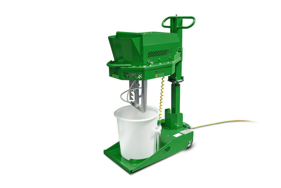 The pivoting MixMatic M930 guarantees rapid homogeneous mixing of materials. Pivoting mixing arm and supplied special mixing containers ensure a smooth operation. That way unnecessary loss of material is avoided and the cleaning of the mixing tools in between is not necessary. As soon as the components to be mixed have been put in, the machine can be hydraulically lowered and brought into working position by pressing a button. During the mixing process additional components can be added.