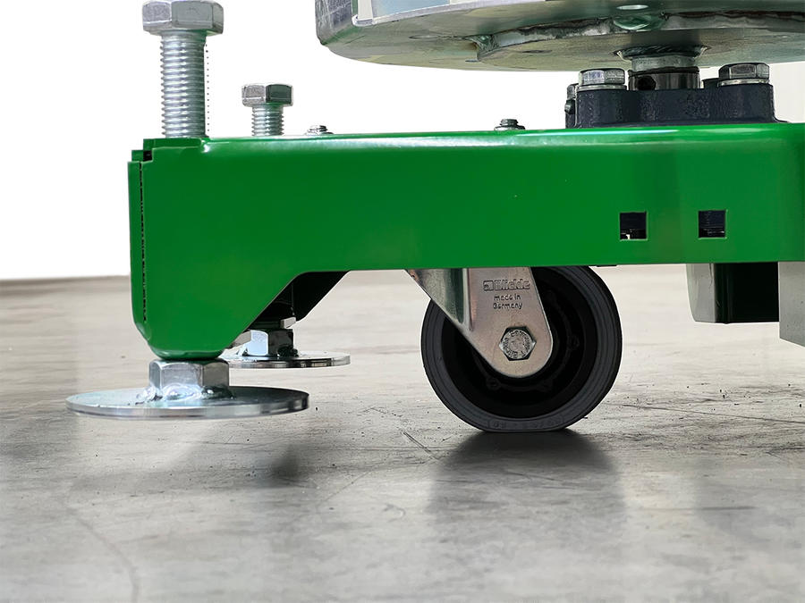 The mixing time is adjustable. The duallywheels ensure a easy transport and the support legs ensure a safe stand.