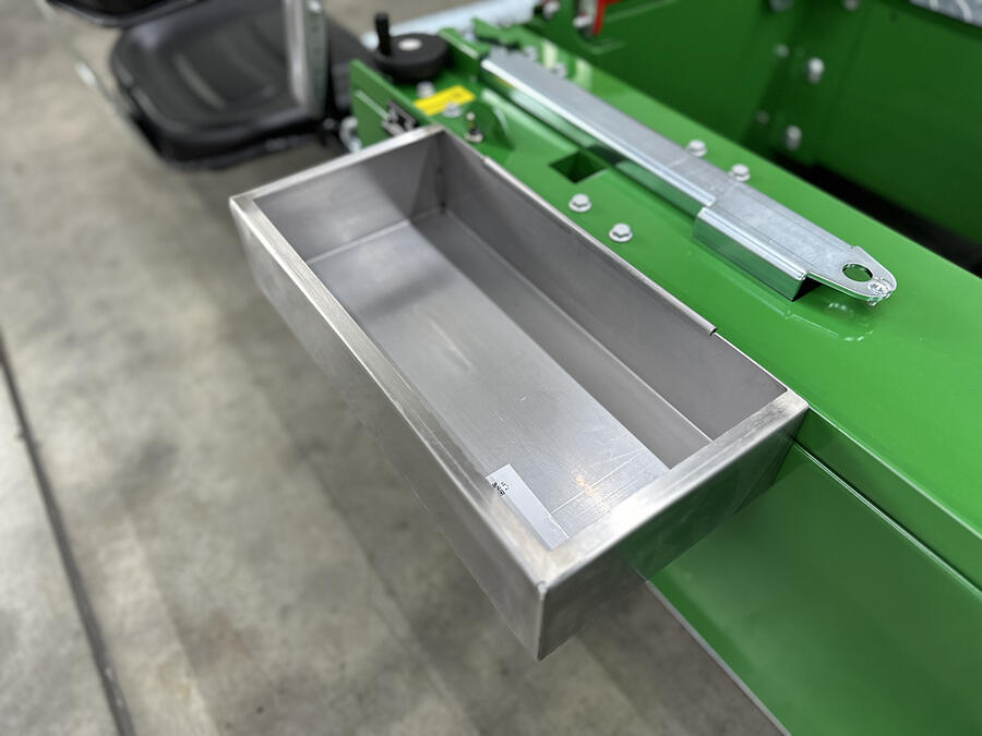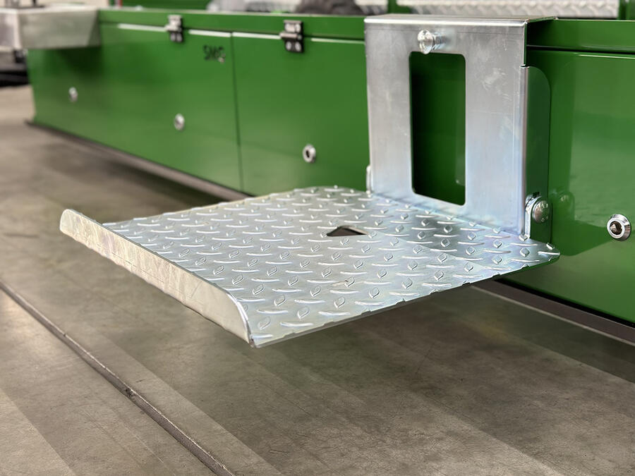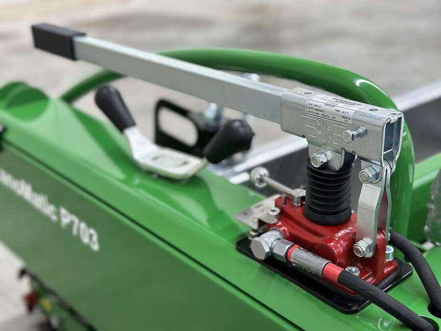 The transport chassis of the P703 is operated electro-hydraulically. An additional hand pump enables a lifting of the machine without external power supply.