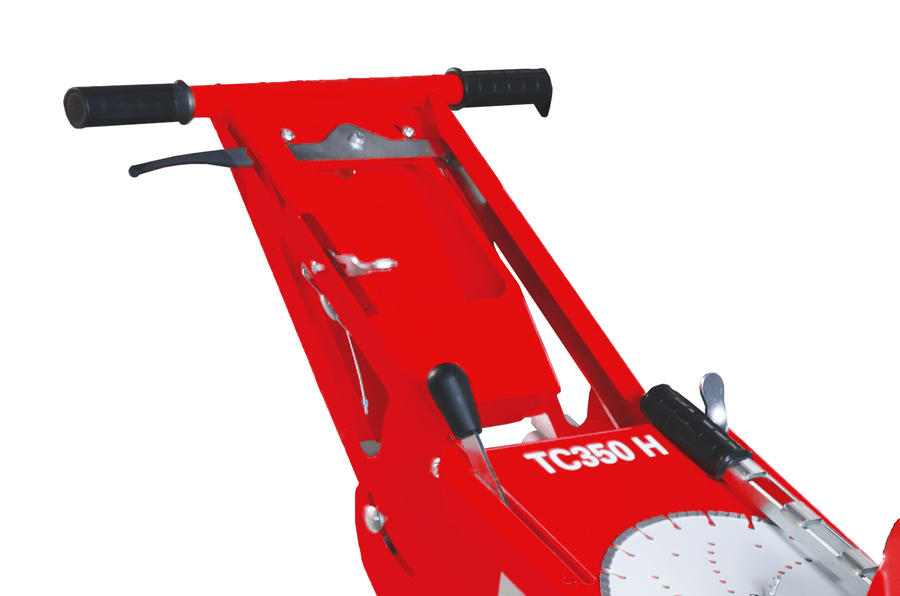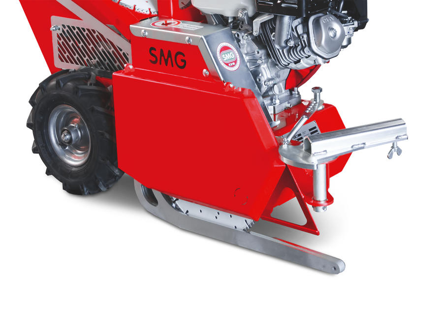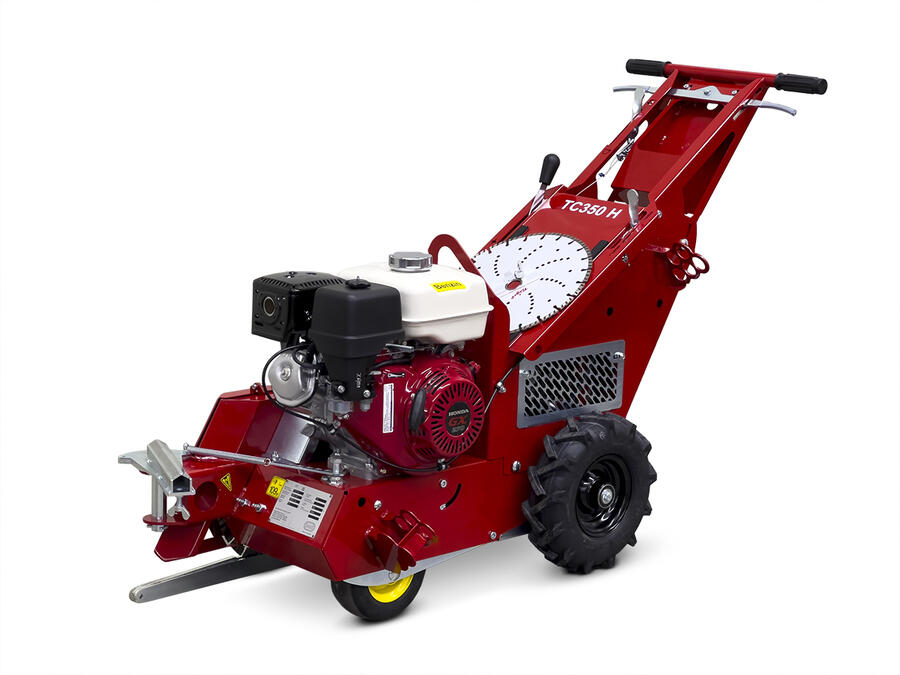 TurfCutter TC350H cuts artificial turf with or without infilling material during the removal process. It is equipped with a sword, penetrating the turf in a selected height and guides it to the motor driven saw cutting the turf. The motorized saw blade then cuts the artificial turf. The guide chain supports a straight cut. The TC350H has a hydraulic gearing for forward and reverse travel, which enables infinitely variable speed up to 80 m/min.